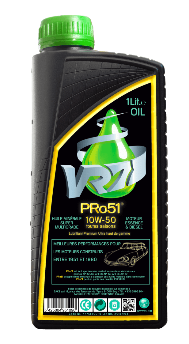 PRo51 l’huile moteur d’excellence, très haut de gamme spécialement développée pour toutes les saisons et convenant particulièrement aux moteurs des véhicules fabriqués entre 1951 à 1988 aux normes API SF/CC